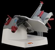 - Permanent, tapered knife ring guard covers non-slicing portion of knife, even when the center plate is removed